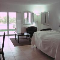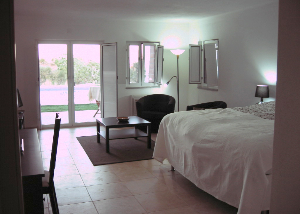 Each room has its own bathroom with a toilet, shower and sink with cabinet. Double doors lead outside, where you have your own small terrace, complete with table and two chairs.