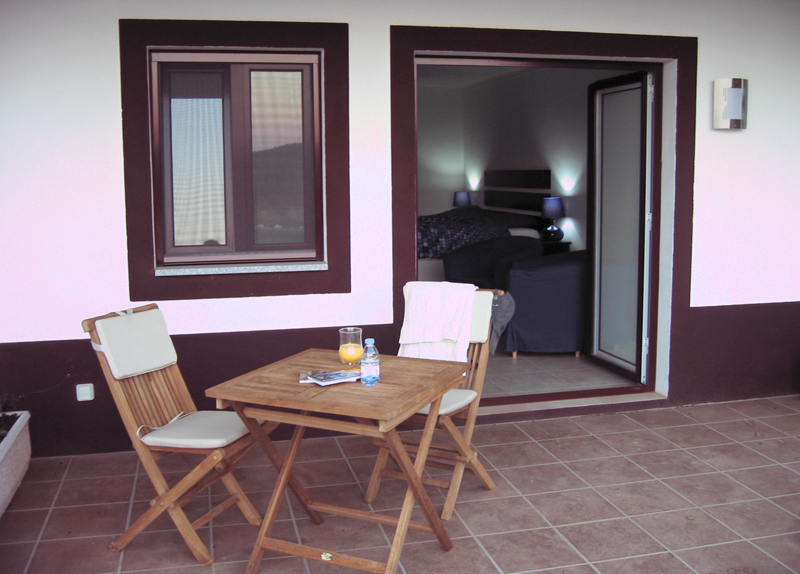 Each room has its own bathroom with a toilet, shower and sink with cabinet. Double doors lead outside, where you have your own small terrace, complete with table and two chairs.
